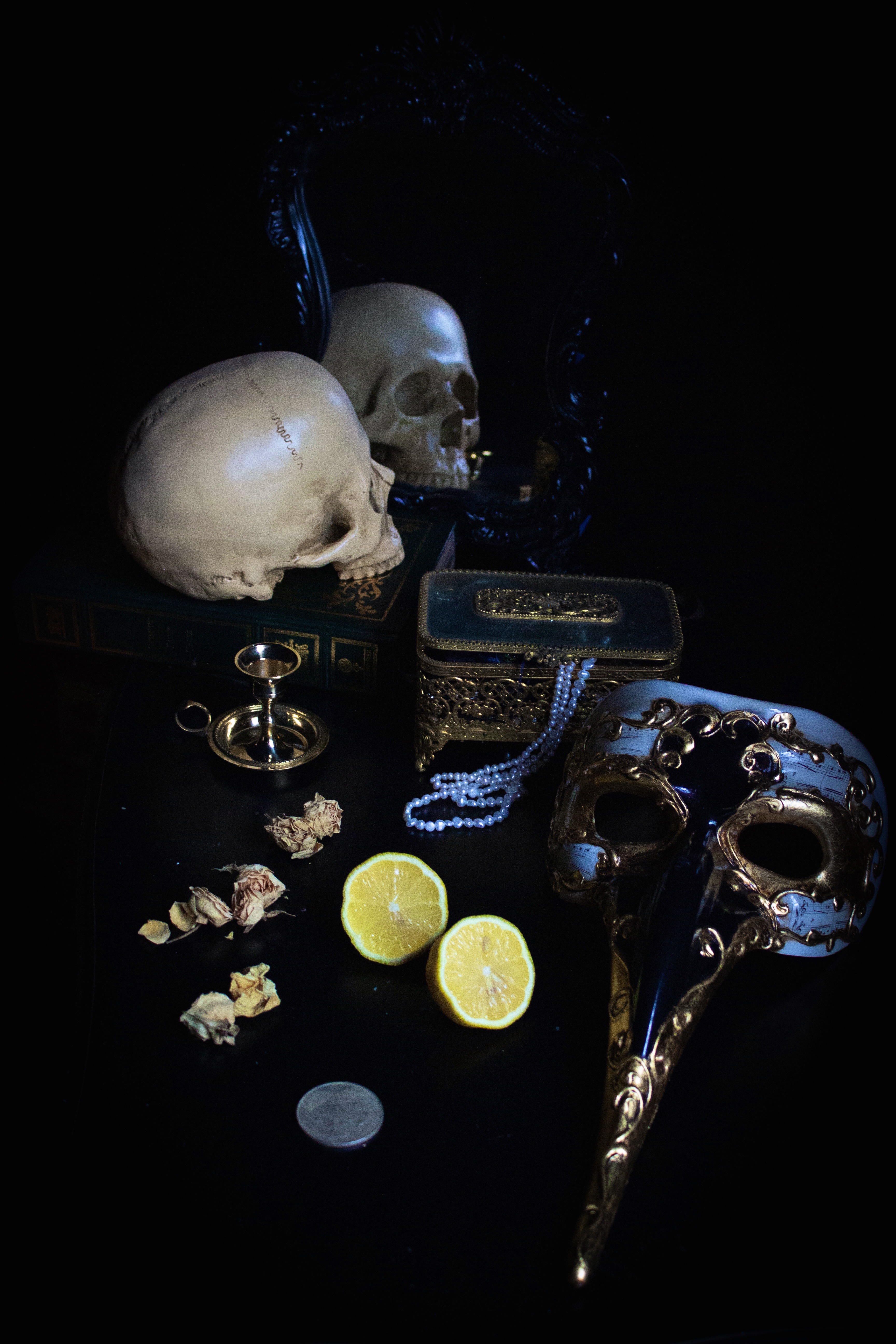 Living by herself in a one-bedroom apartment during the height of the pandemic, Sarah, inspired by 17th-century Vanitas still life paintings, created this series of Vanitas portraits using what she already had at home. All photos were taken in the spring and summer of 2020.