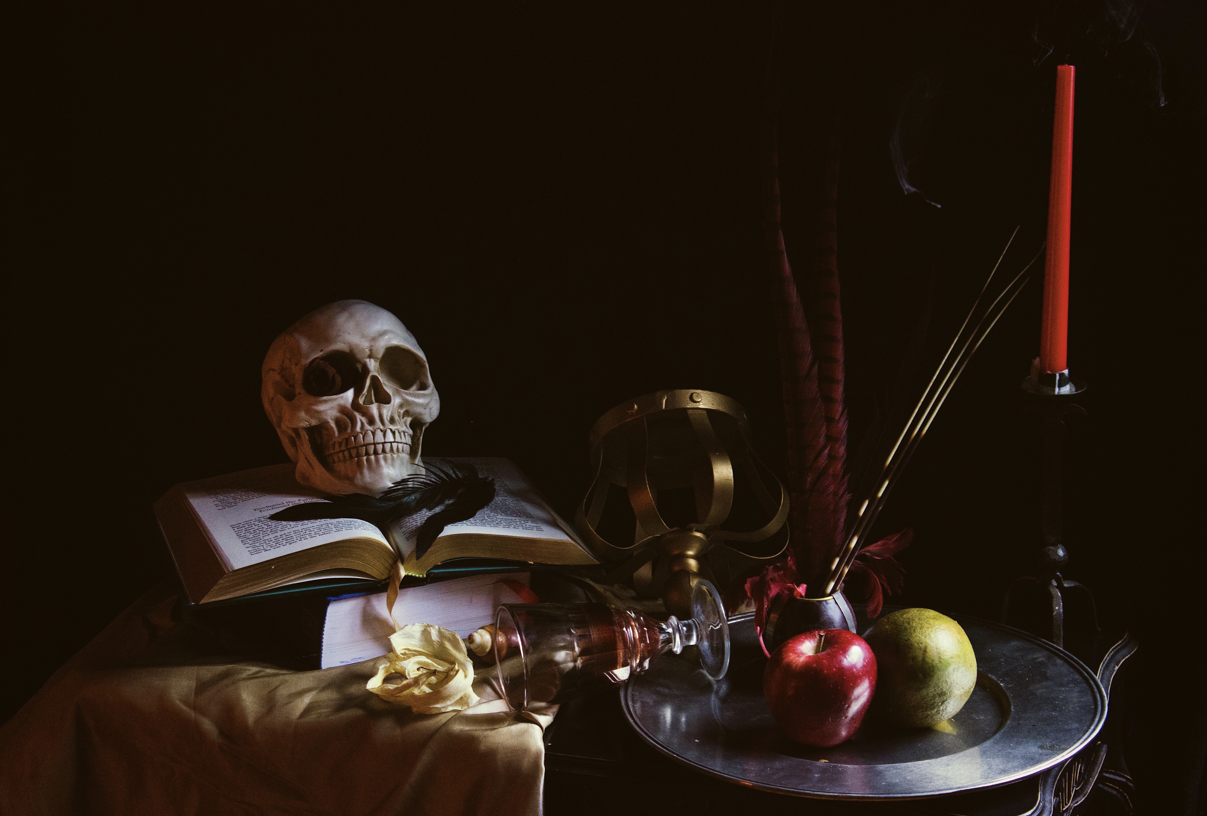 Vanitas explores the fleeting nature of time, the frivolousness of earthly pleasures, and the inevitability of death. Sarah proposes that frivolity and whimsy are categorically imperative in the face of death, and while time continues to be at our deficit. In death, we remember to live.